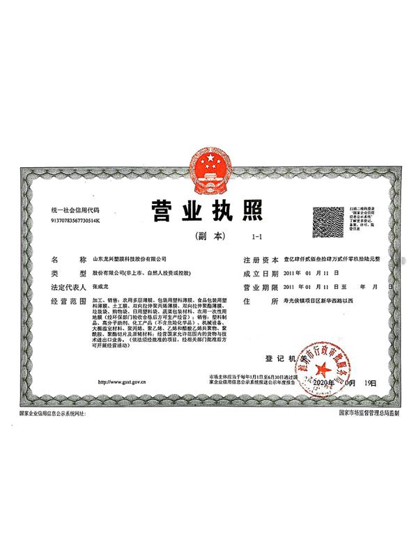 山東龍興塑膜科技股份有限公司前身為山東壽光龍興農(nóng)膜有限公司組建于2011年,2018年10月重組,目前是壽光市國(guó)有控股公司、高新技術(shù)企業(yè),是專業(yè)生產(chǎn)高檔農(nóng)用薄膜、工業(yè)用薄膜的企業(yè),是一家以產(chǎn)品制造為主,集科研開發(fā)、產(chǎn)品設(shè)計(jì)、技術(shù)服務(wù)于一體的綜合性企業(yè)。公司現(xiàn)有職工228人,各類工程技術(shù)人員97人,管理人員20余人,注冊(cè)資金14234.2096萬元,總資產(chǎn)102314萬元,目前是壽光市國(guó)有控股公司、高新技術(shù)企業(yè)。公司是中國(guó)塑料加工工業(yè)協(xié)會(huì)農(nóng)膜專業(yè)委員會(huì)會(huì)員單位,中國(guó)復(fù)合材料工業(yè)協(xié)會(huì)會(huì)員單位,中國(guó)塑料加工工業(yè)協(xié)會(huì)雙向拉伸聚酯薄膜專業(yè)委員會(huì)會(huì)員單位...